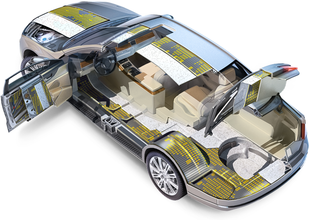 или комплексная шумоизоляция автомобиля, которая подразумевает шумоизоляцию особенно вибро- и шумонагруженных поверхностей кузова автомобиля, таких как: двери, колесные арки, пол салона
