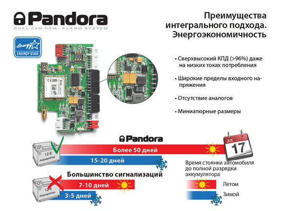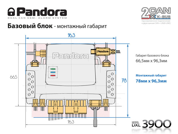 Название модели выдает родство с продуктом Pandora DX-90, от которого заимствована архитектура 2CAN+LIN и порты IMMO/KEY, позволяющие расширить список марок и моделей автомобилей, которые мы умеем заводить при помощи алгоритмического обхода встроенного иммобилайзера. Но базовый блок системы имеет усовершенствования и отличия схемотехники, а также глубокие отличия встроенного программного обеспечения, приближающие его к модели Pandora DX-90BT